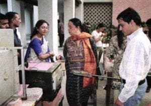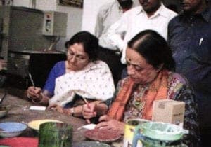 During the workshop some eminent artists visited the college and they were very pleasantly surprised to see such an enameling workshop first time in the college. A. Ramachandran, Gopi Gajwani, Aprana Cour, Anjali Ela Menon (Eminent artists). Anjali Ela Menon made an enamel piece in the workshop.