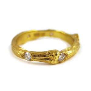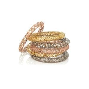 "There are a lot of interesting uses of texture," says Gage, who notes the abundance of rougher, more organic textures. "We're seeing different treatments—brushed, pebbled—that have more of an organic feel. I think part of it is people being eco-conscious and wanting more natural-looking jewelry. People don't want that perfectly polished and tumbled look. It's also about wanting jewelry that fits their lifestyle. The old idea of a six-prong halo diamond engagement ring doesn't resonate with the hiking, yoga-class Millennials. They want jewelry that's appropriate for everyday life, not jewelry just meant for special occasions."