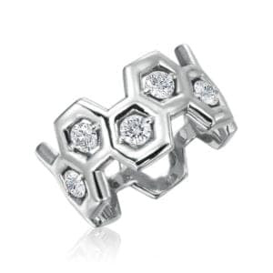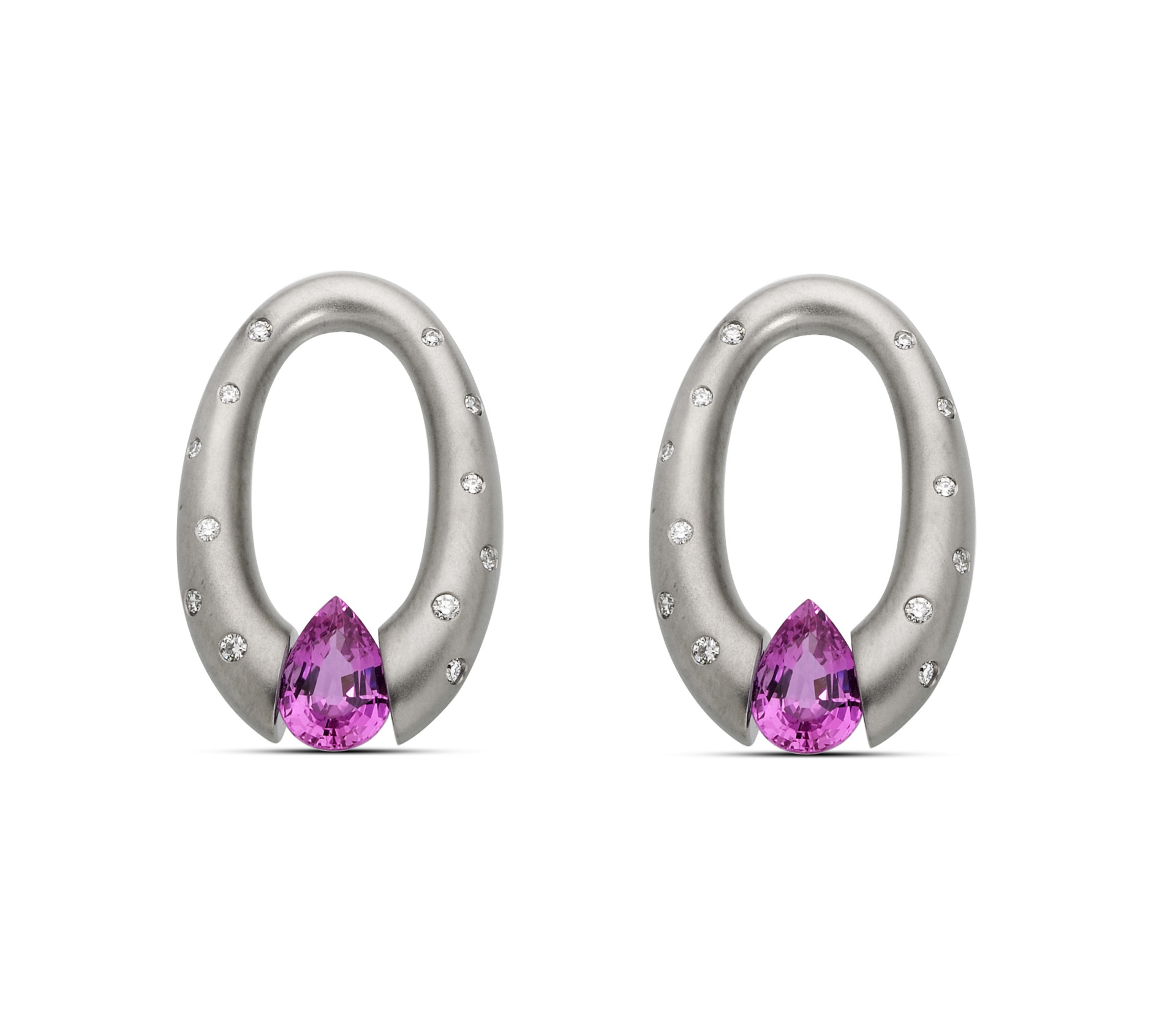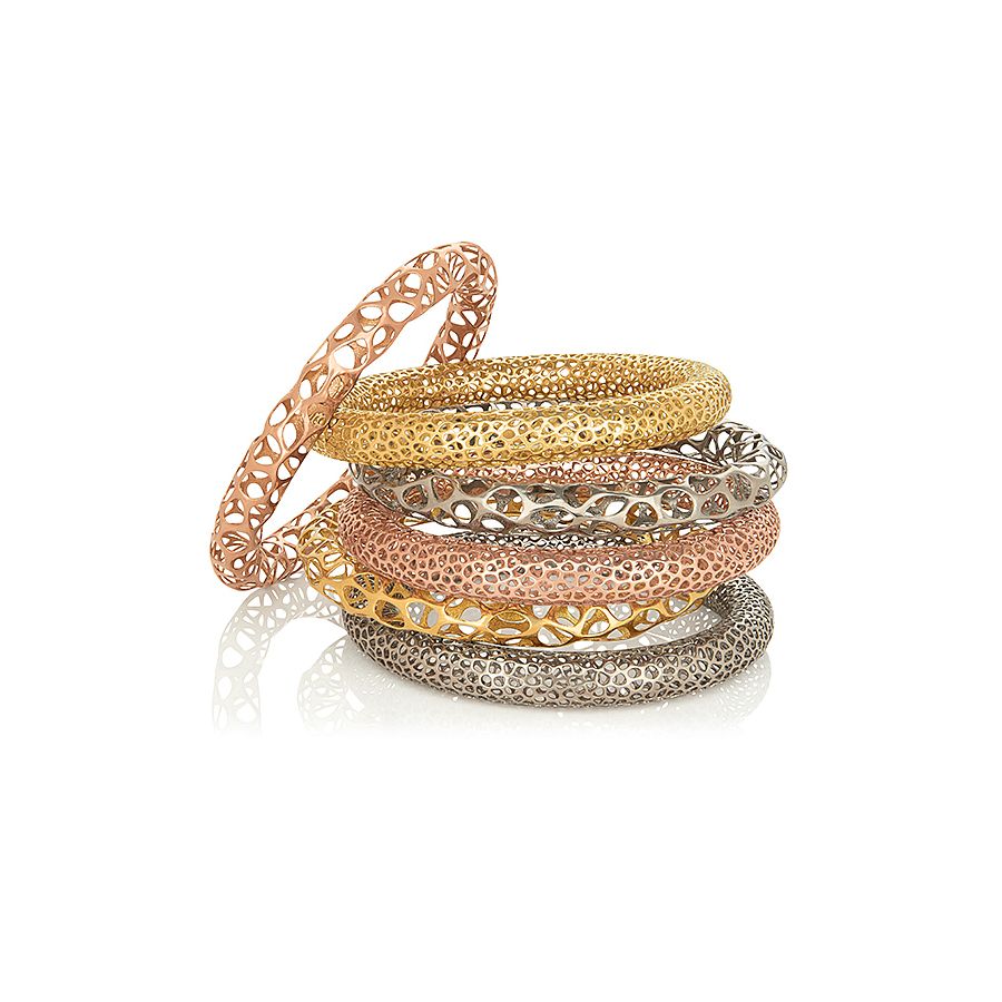 Between the abilities of 3-D printers and the recent development of platinum powder for direct metal laser sintering, designers have more options than ever before for creating large but lightweight pieces in this dense metal. "This new technology is helping designers create unique, larger pieces as they figure out how to lighten them up with negative space," Luker says. "We're seeing a lot of larger pieces, especially many interesting cuff bracelets, being made in platinum. We're also seeing more earrings, which were challenging in the past because of the weight of the metal. Designers who may have moved out of platinum are coming back to the metal because of some of these advances in technology. And the price point of platinum [which is currently around $980 an ounce] is helping, too. It's a really exciting time to be designing in platinum."