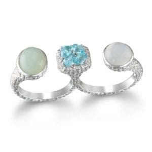 And the styles go well beyond traditional bands. "One of the key things we're seeing is rings with color, not just plain silver bands," Maccaroni says. "We're seeing lighter semi-precious stones trending."
