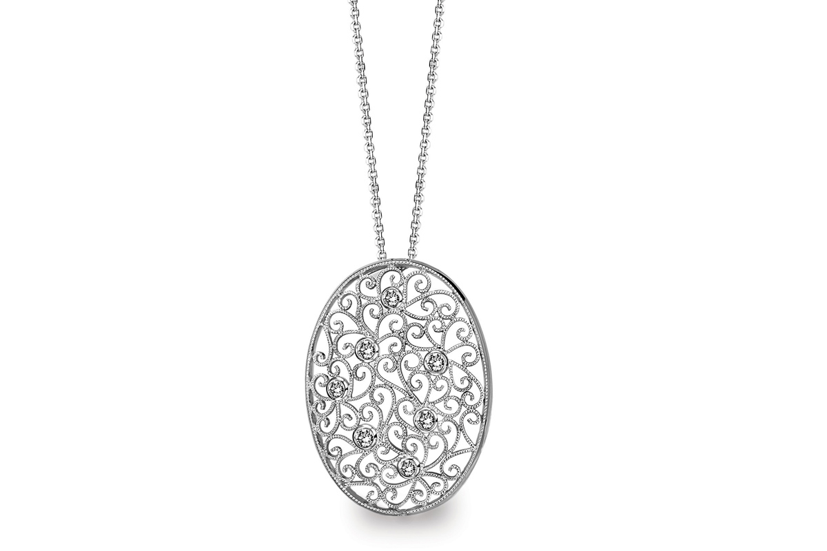 Large looks are also being spotted around necks these days. "We're seeing a lot of necklaces lately," says Luker. "They were big at the award shows earlier in the year." And that trend seems to have trickled down from Hollywood to Main Street. "A lot of women are pairing smaller necklaces, where the focus is on the metal design, with a larger statement piece featuring more diamonds and gemstones, to help create a larger look." When it comes to smaller necklaces, clean, sleek lines are key, leaving large gemstones for the more substantial pieces.