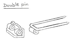 The procedure is similar to the 'single pin' above, except that the supporting block for the chenier is wider as it is the chenier in the middle that supports the double pin. Instead of a groove in the middle, there are two at the side; these provide the spring for the pins.