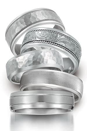 The bulk of Novell's rings are machined from ring blanks and tubing sourced from U.S. metal suppliers. Novell works closely with its suppliers to develop products that are relevant to consumers in the current economy. Last year it launched the In Union line of bonded precious metal bands manufactured by one of its suppliers, Kemp Metal Products Inc. in Westbury, New York. These bonded bands comprise an interior seamless blank of Argentium silver bonded to an exterior seamless blank of 14k gold.