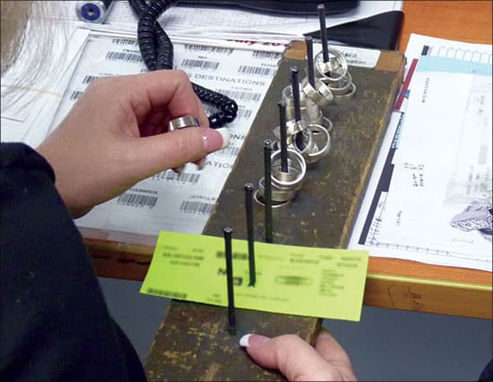 For jobs due to ship that day, a red flag indicator flashes on the screen if it's been sitting in one spot for more than two hours, so the production manager can quickly spot any bottlenecks and move things along.