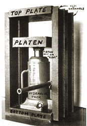 | Marc Paisin's homemade hydraulic press illustrated in Goldsmiths Journal, 1988. |