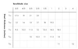Intricate dies, especially those that have small projections, are best made of steel that is at least 1/16" thick. For these dies I use a smaller sawblade (such as 2/0) which allows for delicate cutting and light turns. As a rule of thumb, thick steel and fine blade size give the best results, but this combination is the slowest and most tiring when it comes to cutting. Most of my dies are made from 3/64" or 1/16" tool steel. I usually use a #0 blade, which results in a die that is relatively easy to saw and with proper heat treatment, such a die will survive a couple of thousand punches on jewelry metals.