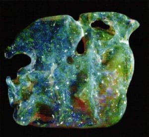 The history of Australian opal actually began a million years ago when parts of Australia were covered by a vast inland lake and stone sediment was deposited along its shoreline. When the water masses retreated, they flushed water rich with silica deposits into the resulting cavities and niches in the sedimentary rocks along with the remains of plants and animals. Over time, the silicon gradually turned into opal. Therefore, opals are essentially a gel consisting of silicic acid and varying percentages of water.