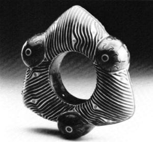 To commit oneself in the jungle of jewelry classifications, categories and specification; to express an absolutely clear definition is an extremely difficult venture. There is costume jewelry, gem-set jewelry, designers' jewelry, gold jewelry, genuine jewelry, fake jewelry, imitation jewelry, folklore jewelry, commercial "normal" jewelry, fantasy jewelry, artistic jewelry - jewelry art.