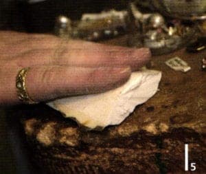 Ossa-Sepia casting is a 'lost form of casting' as the moulds can only be used one time. This makes each cast unique. The moulds are made from the bones of the cuttlefish. The smaller bones are cheaply available from animal dealers; larger bones are available from goldsmithing stores. A fine texture is required as this is transferred onto the surface of the object being cast.