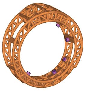 Instead, the Techform team suggested a whopping 19-part sprue system: the original nine sprues feeding the center of the shank and five sprues on each outer rail. "Because you have so many thin cross sections, you need a lot of feeding points in high temperature metals or you'll risk no-fill, sub-surface shrinkage porosity, and gas porosity," says Fryé. "Metals like platinum and palladium have much faster solidification rates than gold or silver, so you need more sprues to achieve complete fill and a high density casting."