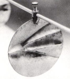 The balance of this paper will deal with the application of cupric nitrate patinas. This general-purpose patina may be applied hot or cold and may be built up to cover surfaces evenly with excellent adhesion. The solution is most easily applied to brass but holds better on copper. It is a surface covering and may be used on silver, nickelsilver, bronze, steel, iron and even gold. Caution: a good fume hood is necessary when working with this chemical. Nitric acid fumes are released (corrosive, irritant) and the possibility of metal-fume poisoning exists. Plans for a small-scale fume hood for patination designed by Theo Jansen and James Evans are available from the Ontario Crafts Council in Canada. To test air-flow speed use a smoking rope to see the draft in action. The smoke should rise at an angle of no more than 10° from the metal as it moves toward the vent. Rubber gloves and cleanliness are essential. This patina should not be used on surfaces next to skin. No eating, drinking or smoking when working with this patina.