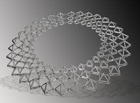 Shown here are Matrix renderings of the Pyramid necklace. Klecka designed one of the largest pyramid-shaped units of the necklace (the motif repeats throughout) and was able to reduce the size proportionately in the Matrix program to create the medium and small sized modules. The applications within the software make quick work of tedious and time-consuming steps.