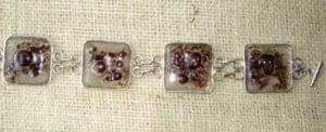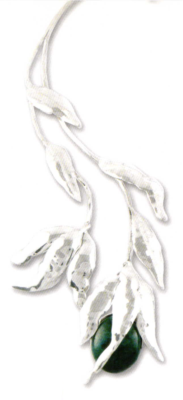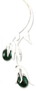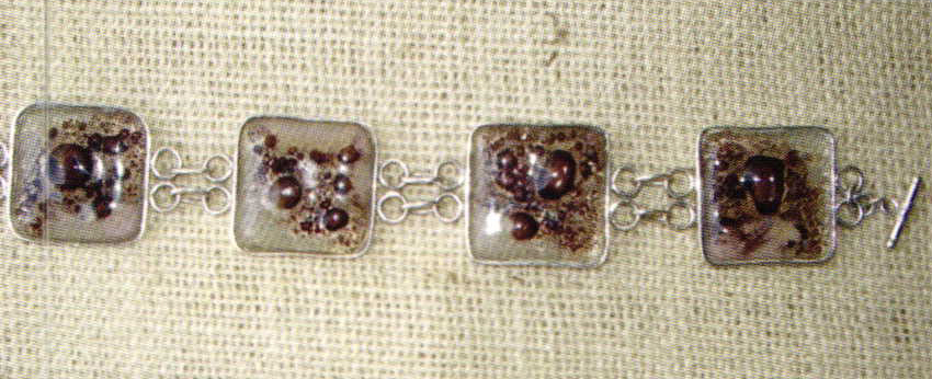 Jewelry pieces by Escalanto Valvez-Mata. Fine silver, vitro glass