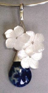 Pendant by Leslie Granthon. Blue sodalit, mother-of-pearl, sterling silver