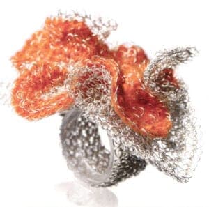 Ring 'Orchidee' by Empratriz Lezama. Fine silver crocheted with 'Punto Peruano'