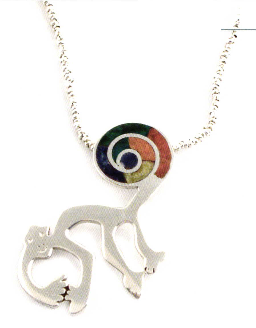 Necklace 'Nazca Monkey' by Gilda Vega. Jasper, serpentine, sodalite, chrysocolla, sterling silver