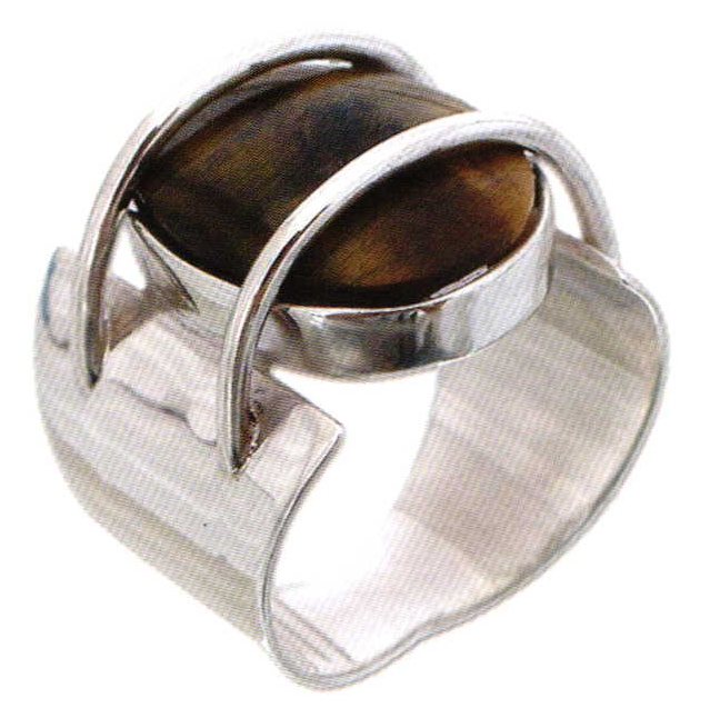 Ring 'Web of Mystery' by Claudia Llaury. Tiger's eye, sterling silver