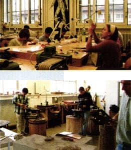 Practical coursework is the main thrust of the entire course of studies, continuing throughout all semesters. Over the course of a semester, each student develops his or her own jewelry work, covering all areas from the idea and concept to the final production. In view of the fact that all students must have completed an apprenticeship as gold or silversmith in order to be admitted, although an internship of at least one year may be accepted, the requirements placed in the students are more or less the same in terms of lending structure and form to an idea. During the first three semesters, the triumvirate of professors provides an introduction to the basics of project work. As early as the fourth semester, students are allowed to select the project and the tutoring professor themselves. This independently managed semester is a good preparation for the fifth, the practical study semester. During this six-month internship, students are incorporated in the company procedures in jewelry manufactories, and also in atelier and jewelry gallery work. Students have a lot of freedom to experiment with different combinations of jewelry and equipment until they submit their graduation piece in the eighth semester. In addition to techniques of freehand presentation, the technical subjects have for a few years now included an introduction to the basics of Computer Aided Design, known in brief as CAD. Under the specialist instruction of qualified designers, students learn how to handle a mouse in the well-equipped laboratories. Within this framework, students can pass through all opportunities offered by design in two and three-dimensional space and can also become acquainted with the progress from a virtual model to rapid prototyping. The entire process chain from the design, construction, rendering and animation, through to the prototype production is practiced on a design task that the students define themselves. The goldsmith and silversmith studios are equally well furnished. Students can find at all fifty workstations all of the tools and equipment required for traditional goldsmith work and modern production techniques. Interdisciplinary components are added to the simple design of jewelry. Roughly one third of the courses on offer are artistic in nature, including painting, sculpture, digital media and freehand drawing. The theoretical part is enriched by lectures on the science of art and design. Participation in competitions, tandem projects with industrial partners and exchange programs with jewelry schools around the world is seen as obligatory. Joint critical and self-critical discussions between professors and students are equally indispensable. The wealth of topics and projects will always provide an occasion to exchange opinions during experimental design in an artistic framework and also in specialist project work within the Faculty of Jewelry and Everyday Object Design.