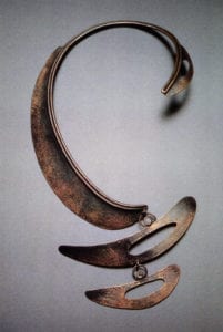 Art jewelry of the seventies moved out of Greenwich Village and San Francisco to universities, art schools, and colleges across the US, part of the institutionalization mentioned earlier. There was, in fact, a disconnection from the jewelers in Messengers of Modernism.