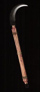 The collaborations with sheath and handle maker Jim Kelso of Worcester, Vermont, confirm the indeterminate historical allusions to prior decorative arts styles: Aesthetic Movement, Art Nouveau, Japanese Edo, or Momoyama periods. Always evocative and never specifically allusive, joint efforts such as Autumn Dagger, 1990 and Magic, 1992 summon up worlds beyond the recognizable heritages which may have influenced their making.