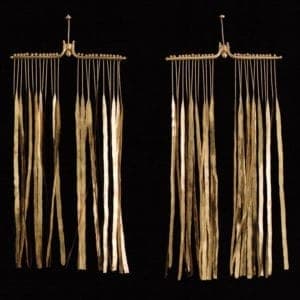 Like many contemporary American jewelers, Fike explored wire and kinetic through his fibulae, neck pendants, and ear ornaments. He favored precision and bringing wire to its extreme. He would draw it to an exceedingly fine gauge, end it in a weighty ball, wrap it around a form, or forge it to its widest, longest, thinnest possible state. The Orbiters ear ornaments were so precisely balanced that once they started rotating they continued to spin, silently, almost musically, for two or more minutes. The fine gauge gold wire in his Bar Suspended Wheaters ear ornaments were planished to a thin foil. By rendering the work down to its essence "he [Fike] lets it breathe" and exist as its most exquisite self.