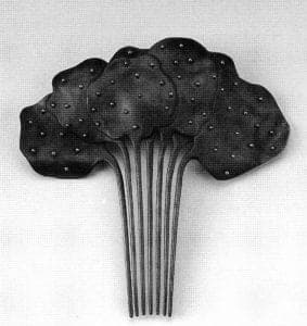 Niello is a method of decorating silver or gold objects by filling incisions on the metal with a paste made of copper, silver, lead, and a small bit of borax and heating it until the amalgam flows. Fike's first niello experiment in 1947 generated noxious fumes and caused the evacuation of the entire arts building. Regardless, his resulting brooch, inlayed with niello, earned him an A, won him his first award, and convinced the head of the department to install a much needed exhaust system. Fike said he "rapidly became known among craftsmen for his success with this difficult process … [because] no one had ever seen it used in a contemporary mode."