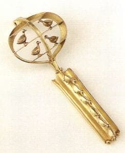 His last piece, in progress at the time of his death, harks back to his first. Duck Fibula seems to say it all. It calls attention to the noble fibula, the amazingly versatile duck, and the sure hand of a master metalsmith. "The duck is special because it can walk on the land, swim in the water, feed under water, fly in the air, migrate intercontinentally, and mate for life". Even unfinished, cast in 14k gold, the sight of this piece made me catch my breathe, just as I did when I saw my very first and still unforgettable Etruscan duck fibula, dusted in granulation in a museum in Rome. Like the Etruscans Fike learned so much from, the artist revered all living forms and shared a deep kinship with them. It seems fitting that the amazingly multi-talented duck, just like Fike, should march on forever after on the rib of his final fibula.