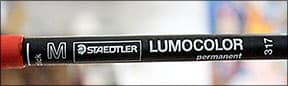 - After many tests of red Sharpies and other pens, I found that a Red Staedtler Ink Pen will stand up to mordants the best, due to its chemical makeup. Ballpoint pen tips won't allow the ink to pass onto the metal steadily enough to create a good mark on the metal. Also available from MisterArt.com.