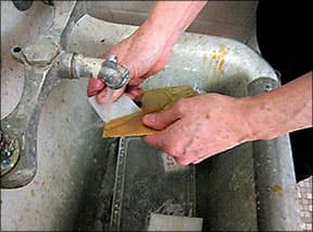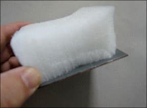Begin with a piece of copper or brass no larger than 3 x 3 inches and a minimum of 20 gauge. File any corners or rough edges until they are smooth. Clean your metal with Scotch-Brite and cleanser or Penny Brite until water runs off your metal in a sheet. If you see the water beading, then clean again. Scrubbing with Scotch-Brite will serve to give the metal a "tooth" which will help the toner to adhere. Dry thoroughly with a towel and handle by the edges. For your iron to glide smoothly, you must file the edges of your metal.