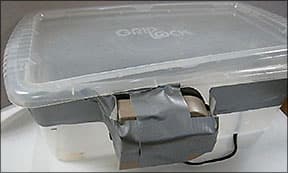 | Rubbermaid Tub | small, the size of a shoe box with a tight-fitting lid |
