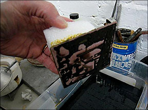 Clean the metal with the Penny Brite or cleanser and use the Scotch-Brite pad. This will scrub off the last of the toner. Now you are ready to use your etched piece.