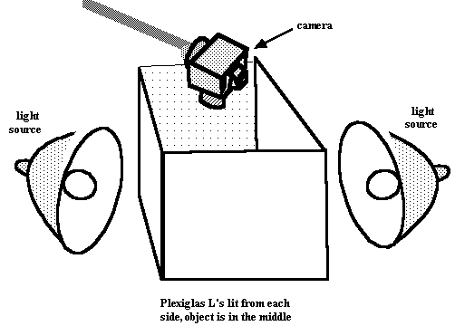 An advantage of using the L as in the above diagram is that shadows cast from any overhead lighting present are eliminated because of the lighting from below.