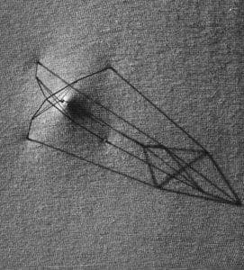 By the late 1970s, Degen had become interested in the three-dimensional quality of the assemblaged pieces and the shadows which they cast. The shadows became an integral part of the pieces and he began a series of shadow pieces or Extensions as he has called them. Made of steel rod and thin cord, in strong light they were nearly indistinguishable from their cast shadows. Reid has noted that their most radical quality was "self-effacement: for the first time we are presented with jewelry that, so far from drawing attention to itself, seeks to hide amongst ambiguities and shadow play".