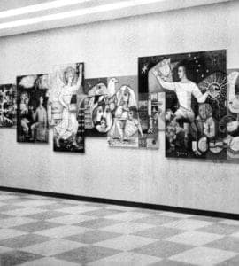 Several critically acclaimed murals followed: Wisdom at Whittier Public Library, Whittier, CA Pacificana, a 10 foot x 24 foot enameled copper repoussé wall at the Pacific Employers Group insurance companies building, Los Angeles; and four murals at the First Presbyterian Church, San Diego.