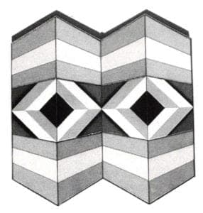 Ellamarie began to incorporate hardedge geometric designs and photo silkscreen techniques in her enamels, using the shape as an integral part of the work. Many of the intense colors were used with a linear style to achieve the effects of optical illusions on flat plane surfaces. She also began to combine other materials - wood, fiber, wire - with the enamel. This new direction resulted in a grant from the NEA. "I realized that I had acquired some personal clichés of design and technique that I was using in a automatic way to do things I knew too well how to do," she explained in an artist's statement from that period. "An upheaval, a new start, a fresh eye were needed. While the enameling process used is really quite elemental, it has been the most demanding and difficult work I have yet done. There is no place to hide!"