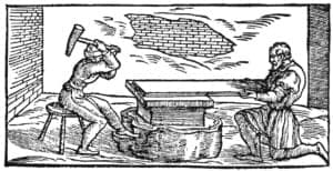 The goldsmith's common practice (as you might have seen) is to melt in a little furnace with small single hand bellows and in a little crucible of heat-resistant earthenware. In brief, they cast all metals in cuttlebone after having moulded, in each of the two halves, the object they want to reproduce. Then they carefully bring the gold object to completion with files or specially suited little hammers (depending on the particular piece). To sum it up, there are three things which in this art are highly regarded (in addition to the general ones): The first is engraving and making figures in full or bas-relief; the other is raising well a silver or gold vessel so that it is solid and well formed; the third is to set rightly and pleasingly a gem in a ring or other setting and to know how to mount it well so as to reveal and, if possible, even enchance its virtues. In order to master these skills well, goldsmiths must acquire them either through great inborn talent or long practice.