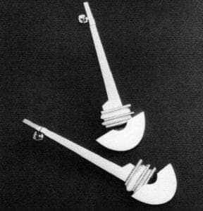 Those design selected as the three award winners revealed the virtually unlimited potential of the material when masterfully handled by designers whose abilities achieved an admirable balance between esthetic goals and traditional craftsmanship. The icicle carousel earrings by Philip Fike reiterate both the strength and lightness of platinum, while Lynda Watson-Abbot's sandblasted and subtly colored calligraphic landscape brooch examines the textual qualities of the metal. Whitney Boin's articulated spoke earrings underscore the relationship between body ornament and body movement, capturing light in a series of interlocking planes while offering glimpses through the design; structure and visual qualities are reunited in this design with particular elegance and economy of materials. If the award winners in this year's competition may be taken as a barometer of the contemporary jewelry designer's awareness of platinum as a vehicle for new ideas, it may be hoped that inspired and challenged by the designs selected as the prize winners for 1983.