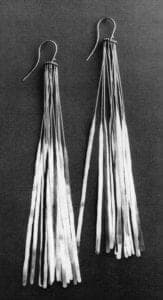 Many of the submissions satisfied my criteria very well. The Grand Prize winner went beyond this. The earrings are large yet not heavy; bold forms yet delicate in detail; solid in some lights, transparent close-up; circles yet linear. Since each element is hinged, they move in multiple directions in response to the body. These contrasting and changing aspects make the earrings fascinate, provoking thoughts and feelings beyond the appreciation of platinum yet dependent upon the medium.