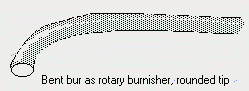 An old bur can be broken off. The end heated is and then bent over. Harden and temper it to a blue on the body and light yellow at the tip. It is then smoothed and polished and when used in a flexible shaft it works like a rotary burnisher; like a hammer and fills in pits in castings, gaps and so on.