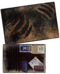 A risk was taken on my part with the concept for an exhibition entitled "Postal Cards and Postage Stamps," for the Woodrow W. Carpenter Enamel Foundation's Second Biennial Conference. The conference was held in the facility he built and uses to promote the act and art of enameling.