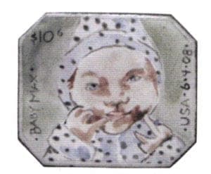 Three postage stamps from Mary Kline of St. Pete Beach, Florida, entitled "Mary does her Brunhilde" for a stamp from Norway, "Million-Dollar Baby, Max Ryan Ofigee, First-Day Issue stamp," and "Egypt - 7000 Years of Tourism," Commemorative, documented her realities with diminutive refinement containing perfected edges and uncommon sincerity to the concept.