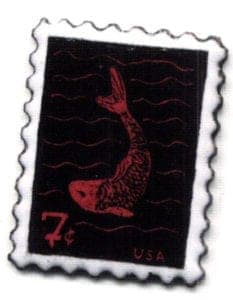 Casey Sharpe created a stamp, "Crimson Koi," that was an eye stopper and called one to take a closer look. Had the overglaze enamel been well prepared the excellent rendering would not have forced the eye to see that the stamp fell short.
