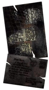 Both of the above had layered, sandwiched construction. "Homer's Surprise" had hanging suspensions, while McLarty's had visual free air suspension of paper collage cut from antique postcards as images for both sides. The backs of both McLarty pieces were in stoned champlevé with paper postage stamps applied. Her nut and bolt assemblage refinements were excellent. That is not to fault anything about "Homer's Surprise," which used glue.