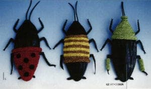 Patient hand-crafted pieces and a good dose of humor are reflected in the 'Cockroaches in Metamorphoses' work by Felleke van der Leest