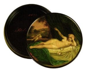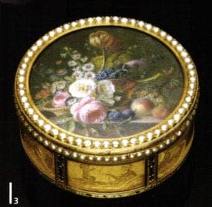 The Berlin products from the last third of the 18th century were characterized by valuable stone adornment and artistic miniatures, especially by Neuber. England was also in the grip of a tin fad at the time. And the bourgeois classes wanted whatever the aristocrats had. This led to a tin fashion made of silver with tortoise shell or lacquered lid; the most famous of them were made by the Brothers Martin in France and Johann Heinrich Strobwasser in Germany.