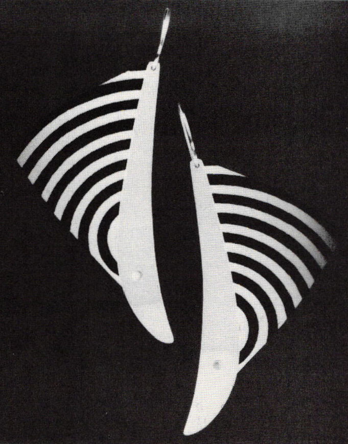 | Description of Jewelry Line: | High-fashion and art jewelry—mixed-media assemblages, in precious as well as nonprecious materials, combined in a clean, graphic manner and strengthened by unusual colorations and surface treatments. Uses a unique laminate of polymer and aluminum, calling it "luminar." Has been working in production jewelry for three years. Line changes constantly with artistic growth—adds and eliminates designs two times a year |