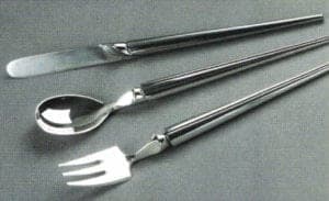 Individual seasonings are dispensed from saltshakers and pepper mills by Ulli Leitner, Gabriele Knebel, Katja Holtermann, and Bernhard Musch-Maas, who also contributes a wide variety of cutlery for the salad or appetizer courses. An area in which lgnazio Tola, Bohyung Koh and Franziska Rauchenecker have created beautiful forms for the main dishes.