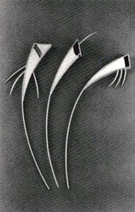 The work submitted for this problem exhibits widely differing approaches and conclusions—only one, however, addresses the true character of line and that is the work of Linda Oliver-Matt called Structural Bodies. The minimal linear elements (wire) extend the natural curves of the human form—addressing pans of the body seldom dealt with. These wire elements also extend to the linear elements of the architectural environment (building wails, roofing and plumbing elements). Jewelry is no longer additive but pan of a total visual environment. The others are presented here because I find the diversity rewarding.