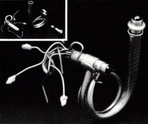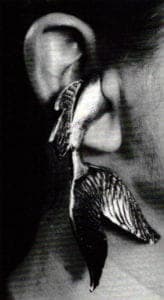 As a final burst of the outrageous neo-dada or late 20th-century surrealism—we have Rebecca Coldren's (University of Michigan) Fish Earrings, although Earplugs, would be a better description! They are in a class by Themselves—a zany creation that goes beyond taste—good or bad—but certainly not indifferent. They exemplify jewelry for the brave, for the uninhibited, with no sense of the pretentious "jewelry-as-performance" school. They make us laugh, force us to question body adornment. They brighten our day.