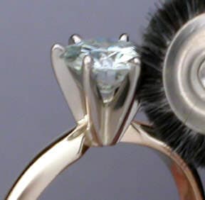 8. I inspect the ring to ensure the bearing in each prong is equally cut. Next I remove the flashes of metal from each prong that were created by the burring process with a flat bottom graver. I place the gemstone in the bearing and check that: